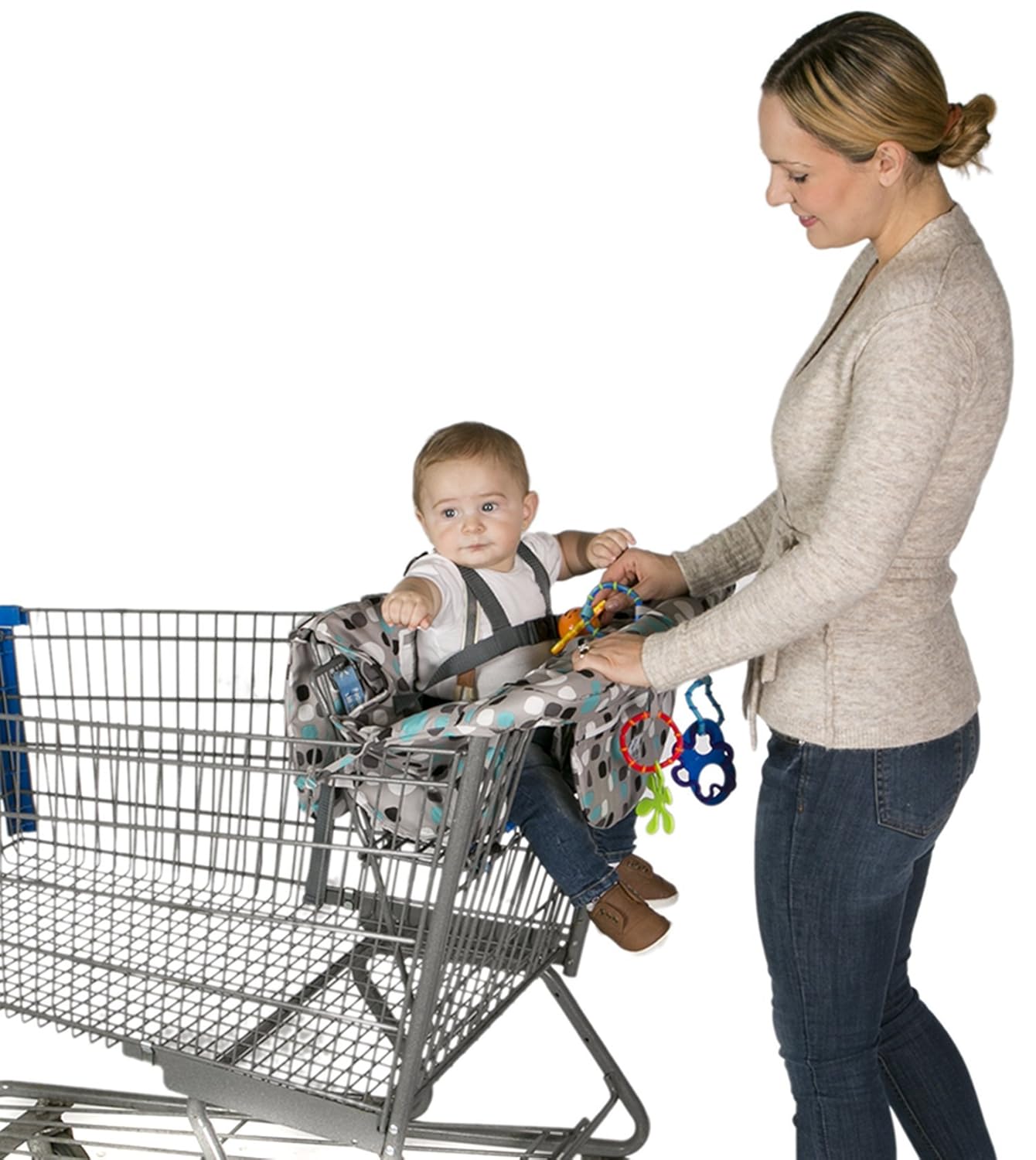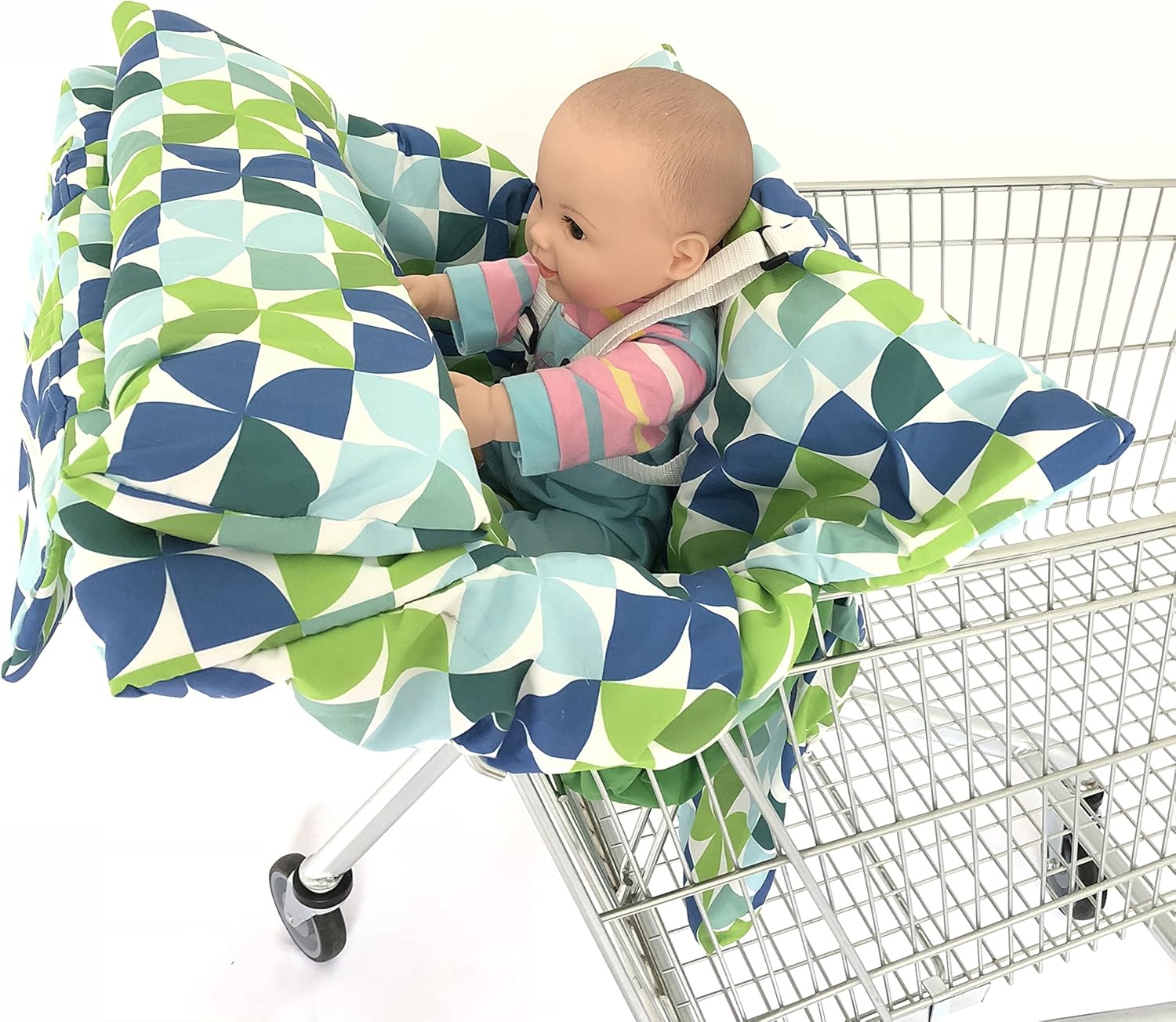 Momogo baby boys shopping cart and high chair seat insert, blue diamond.